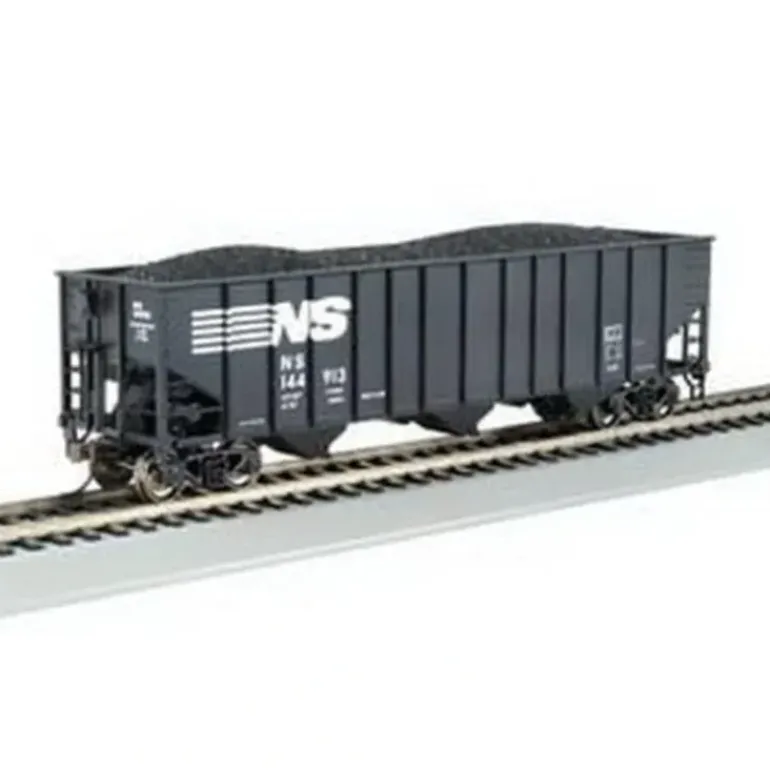 This is Bachmann 18743 HO Norfolk Southern Bethlehem Steel 3-Bay Hopper #144927 Its key features are: Blackened metal wheels Body mounted couplers Non-magnetic axles.