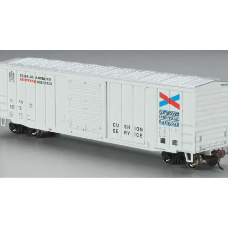 This is Bachmann 19605 HO Chattahoochee Industrial 50’6 w/ Sliding-Door Boxcar. Its features are: Operating sliding doors 100-ton roller-bearing trucks Metal wheels Prototypical graphics Detailed underframe Optional tack boards included E-Z Mate Mark II couplers.