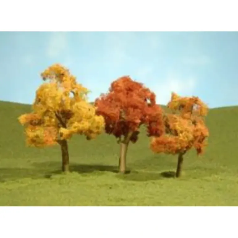 This is a Bachmann 32053 HO Autumn Elm Trees (3). Bring your urban or countryside railroad to life with realistic SceneScapes trees by Bachmann. Create your own orchard or blanket a hillside in dense forest with deciduous and coniferous trees offered in a variety of sizes. Suitable for all scales. For use with all train layouts, realistic colors, removeable bases for more placement options, size assortment for added realism. Suitable for all scales, but most commonly used in HO; (3 pieces per pack).