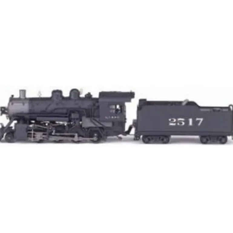 This is Bachmann 51302 HO Santa Fe Baldwin 2-8-0 Steam Locomotive w/DCC #2517. Features DCC-equipped for speed, direction, and lighting. 5 pole skew-wound motor. Belt/flywheel drive. All metal chassis. Metal side-rods. Metal wheels under tender with pickup.