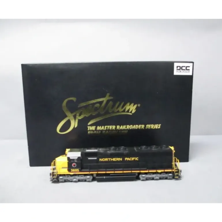 Here is a Bachmann 82713 HO Scale Northern Pacific SD-45 Diesel Locomotive #3605 w/DCC. During the 60s and 70s, the race was on among locomotive manufacturers to develop more powerful locomotives for long-haul freight service. Among EMDs entrants into the fray was the special duty SD-45, a 3600-horsepower prime mover that went on to serve virtually every major railroad. With a V-20 engine and six-axle trucks for superior tractive effort, the SD-45 embodied the latest and greatest technological advances of its day. Following EMDs lead in the pursuit of cutting-edge technology, were proud to offer this Spectrum locomotive. Features include: DCC-equipped for speed, direction, and lighting die-cast gear towers die-cast mainframe die-cast underframe precision balanced motor and flywheel assembly for quiet operation 5-pole, skew wound motor brass, machined flywheels RP25 wheels fine scale detail parts.