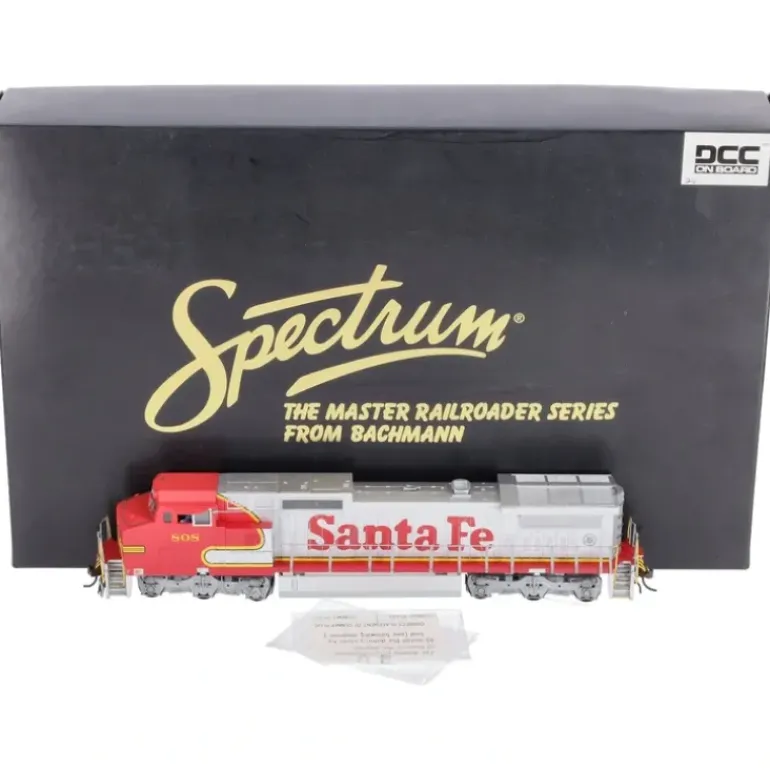 Here is a Bachmann 83503 HO Santa Fe Dash 8-40CW w/DCC #808. This wide-cab style locomotive was originally offered by General Electric as an option for the Dash 8-40C, later becoming the standard for their series of contemporary freight locomotives. Were proud to honor General Electrics high standards with our HO Scale Spectrum Dash 8-40CW. Features include DCC-equipped for speed, direction, and lighting die-cast frame 5-pole, skew wound motor machined brass flywheels directional lighting finescale detail parts RP25 wheels.