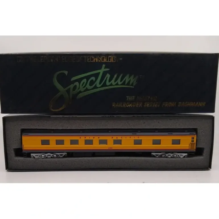 Here is a Bachmann 89024 HO Scale Union Pacific Diner #4051. This car features a durable plastic construction, interior illumination, plastic trucks, metal wheels and axles, and horn hook couplers.