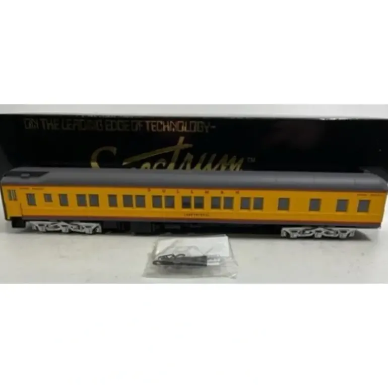 This is a Bachmann Spectrum 89027 HO Scale Union Pacific Heavyweight Pullman “Lake Crystal” Car. Features include plastic trucks, detailed interior with lights, knuckle couplers, and it measures approximately 11 inches long.