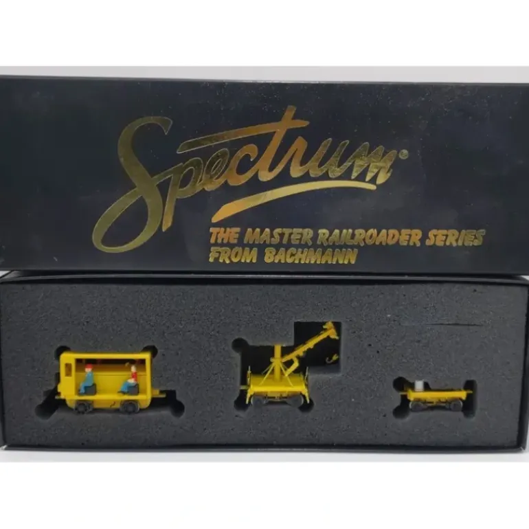 This item includes three Maintenance of Way vehicles. A perfect addition to any post-steam railroad, the vehicles are available in standard safety yellow and are easily customizable. Features include: precision skew wound motor (speeder only), finescale interior detail, die-cast gravel load (per prototype), RP25 wheels, E-Z Mate Mark II couplers.