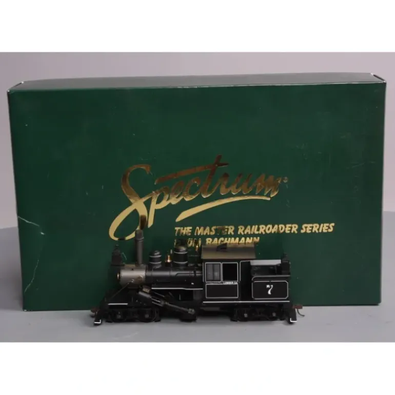 This is Bachmann Spectrum 25760 On30 Scale Pocahontas Lumber Company 28-Ton 2-Truck Steam-Powered Class B Climax #7. These DCC-ready steam locomotives feature a five-pole skew-wound motor, center gearbox and a diecast frame, cab and boiler.