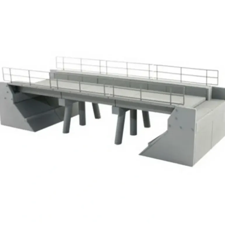 This is a BLMA Models 4390 HO Modern Concrete Segmental Bridge Set A Kit. (2 bases & 3 segments). Our model faithfully recreates the prototype down to small details like bolt heads! Featuring the same expandability as the prototype, this product is available in two sets: Set (A) with (2) two ends and (3) three segments. Set (B) with (3) three additional segments. Features: Easy to Assemble! Injection-Molded Plastic, Light Gray Concrete Color, Perfect for 1970+, Ultra-Common Design, Extremely Accurate Detail, Fine-Scale Handrails. Length (Set A – End to End): 6.85 (scale 50 feet). Width (Trackbed): 1.80 (scale 13 feet). Width (Outside): 2.63 (scale 19 feet). Segment Length: 1.92 (scale 14 feet). Height (floor to bottom): 1.15 (scale 8.3 feet).