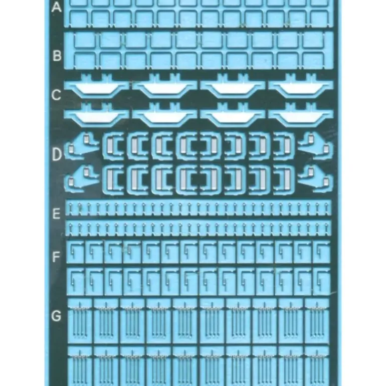 BLMA 8500 Z Scale Diesel Detailing Set #1. This set will consist of common diesel locomotive detail parts to aid in detailing your favorite Z Scale motive power. Features: Grab Irons (15 & 18), Cab Sunshades, Rear View Mirrors (3 styles!), Lift Rings, Windshield Wipers, MU Hoses.