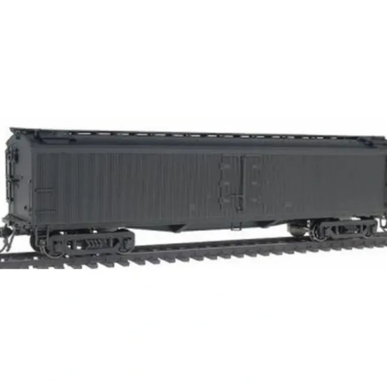 This is a Broadway Limited 899 HO Scale Unlettered Paragon Series General American (GACX) 53’6 Wood Express Reefer (Pullman Green). Express reefers were designed to haul perishable goods to market fast. NormAlly operated at the front of passenger trains, GACX 53′ 6 wood refrigerator cars were the most commonly used cars in the U.S.from the 30s through the 50s. These ready-to-run models feature a plastic body with metal wheels and axles, 2 operating knuckle couplers, operating doors and factory applied hand grabs. All cars can be operated on code 70, 83 and 100 track.