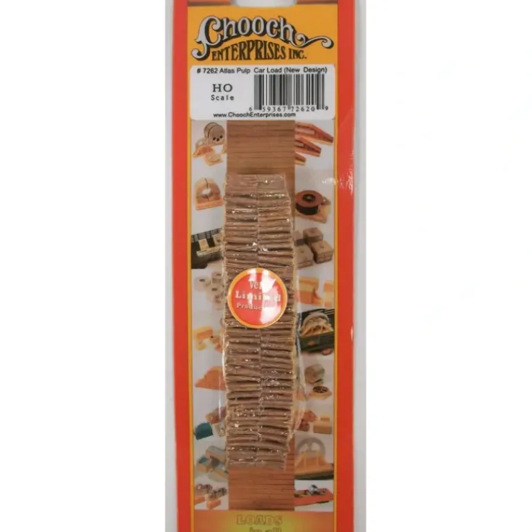 This is a Chooch Enterprises 7262 HO Pulpwood Load for Atlas Cars. One of the best ways to add realism to your car fleet is with visible loads. These cast-resin pulpwood loads are based on shortwood loads that railroads haul between pulpwood landings and paper mills. Each load comes decorated and several sizes are available for your favorite cars.