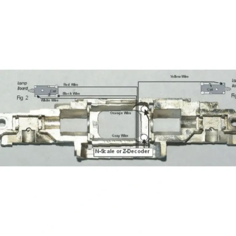 This DigiFrame has been specialy designed to replace the original locomotive frame and allow you to install an N-Scale or Z-Scale DCC decoder. The kit includes fully illustrated step-by-step instructions
