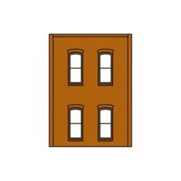 This is a DPM 30138 HO Two-Story Wall Sections With 4 Rectangular Windows Kit. Four sections per package. Each is 2 3/4 wide x 3 11/16 high.