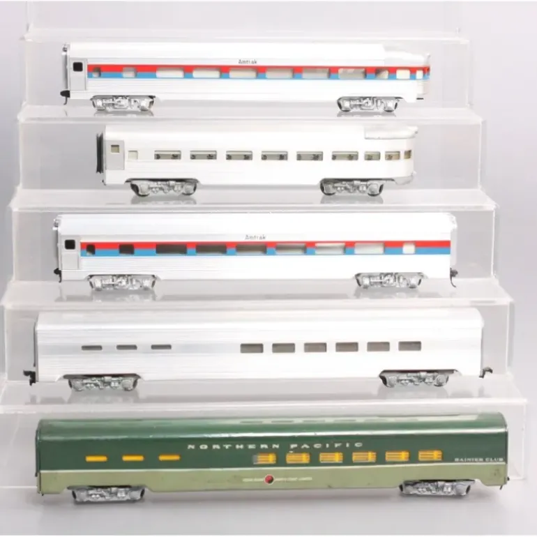 Here are 5 HO Passenger Cars [5]. Features include aluminum construction, die-cast trucks, knuckle or horn-hook couplers, metal or cardboard underframes, and metal or plastic wheels & axles.