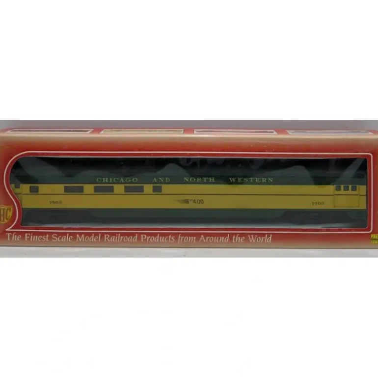 This is an IHC 48044 HO Scale C&NW Smooth Side Combination Passenger Car #7500. It features exceptional detail, precision painting and printing, and separately applied detail parts.