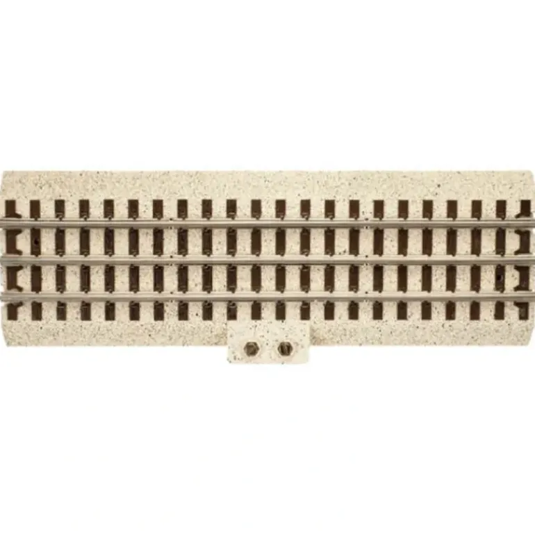 This is section of 10 inch terminal track. Industrial Rail Track features a realistic roadbed track system, Prototypical T-shaped tinplate rails, snap-lock design to ensure positive connections between sections, fully compatible with the premium Atlas O 21st Century Nickel Silver track system, and it is compatible with other roadbed track systems.