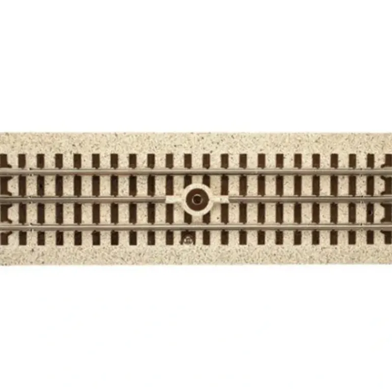 This is a section of 10 inch uncoupling track. Industrial Rail Track features a realistic roadbed track system, Prototypical T-shaped tinplate rails, snap-lock design to ensure positive connections between sections, fully compatible with the premium Atlas O 21st Century Nickel Silver track system, and it is compatible with other roadbed track systems.