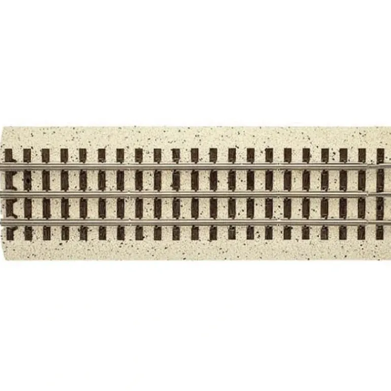 This is a section of 10 inch transition track. Industrial Rail Track features a realistic roadbed track system, Prototypical T-shaped tinplate rails, snap-lock design to ensure positive connections between sections, fully compatible with the premium Atlas O 21st Century Nickel Silver track system, and it is compatible with other roadbed track systems.