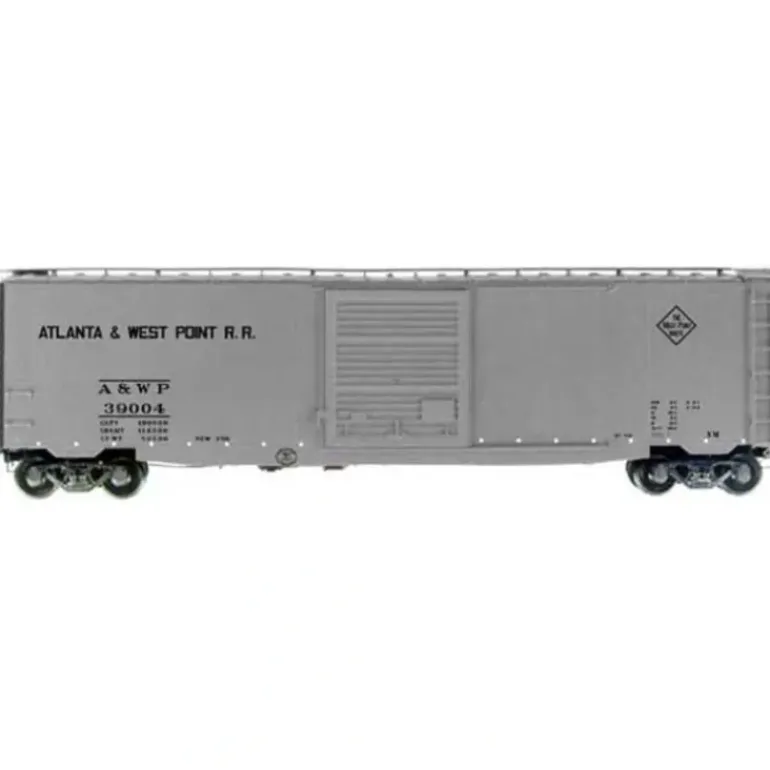 This is a Kadee 6201 HO Scale 50′ PS-1 Single Door Boxcar with 9′ Camel Youngstown Door Atlanta & West Point #39004 (silver w/black lettering). It Features include fully assembled and ready for service, colorful, modern paint scheme and is complete with working knuckle couplers.