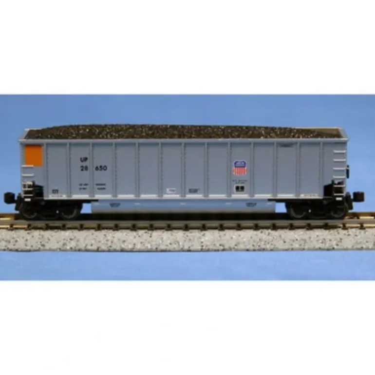 Since 1982, the BethGon Coalporter has been hauling black diamonds across the United States. The largest selling Coal Gondola in the world, the car’s double tub design increases hauling capacity while reducing maintenance requirements. Tubs below the car lower the center of gravity, providing a smoother ride. Model Features: The removable coal load lets operators run full or empty between coalmine and terminal. The shock absorber construction and low-flange metal wheels provide smooth operation. The internal bracing of the tub, close coupling between cars and detail lettering on these cars make them look just like the real equipment