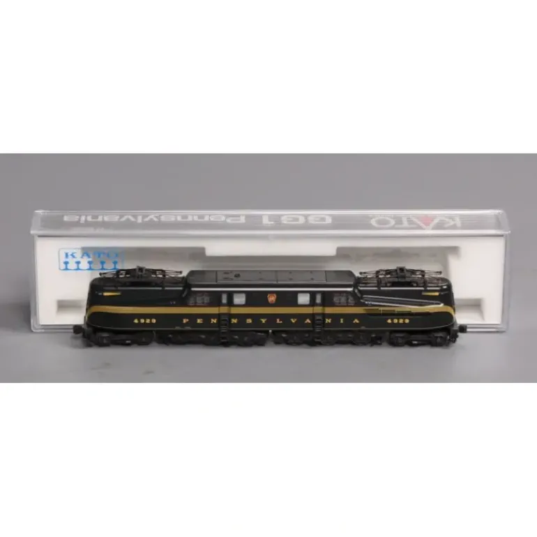 The GG1, one of the PRR’s most famous and recognizable locomotives, is also one of the most curiously designed. Technically two locomotives under one shell (a G class locomotive is a 4-6-0 by PRR specification, therefore the GG1 was two G locomotives in a 4-6-0:0-6-4 arrangement). This added up to a 4.6k horsepower locomotive that was staggeringly powerful, even by today’s standards. Designed in the 20’s, built in 30’s, and not retired until the 80’s, the GG1 had an incredible lifespan and survives today as a testament to its time in both its unique Loewy-design and overwhelming performance. Features: Designed to accompany the Kato Broadway Limited, Blackened metal Pantographs, Able to go through an 249mm radius S-Curve, Shock absorber construction gives even traction and performance, even on the roughest track, Powerful mechanism able to pull a full 15 car Broadway Ltd. Consistantly up a 4% grade, Illuminated + Directional Class lights, headlight, and number boards, and a DCC Friendly mechanism.