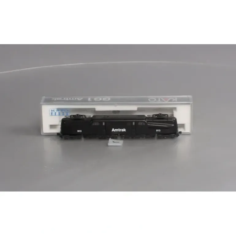 Here is a Kato 137-2021 N Amtrak GG1 Electric Locomotive #913. This locomotive features a weighted frame, detailed plastic shell, plastic truck sides, precision motor, operating headlamp, couplers, and metal wheels.