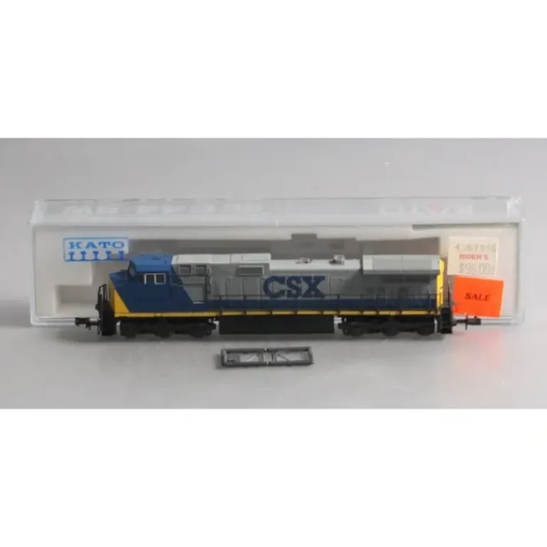 Here is an unnumbered Kato 176-3403 N Scale CSX C44-9W Diesel Locomotive. This unit features plastic trucks, rapido couplers, metal wheels, and a motor. Please see my pictures for additional features.