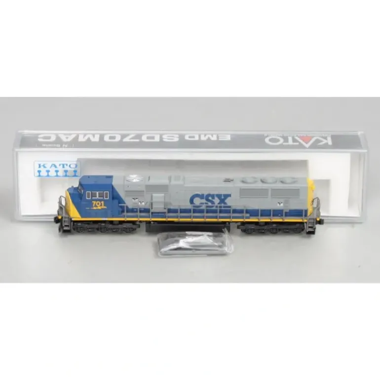 The General Motors Locomotive Group (GMLG) Electro-Motive Division (EMD) SD70MAC is one of the most common locomotives plying the rails today. Originally introduced in late 1993 with an order for the Burlington Northern, the production now totals over 900 units, exceeding the combined production of the SD80MAC and SD90MAC locomotives by over 300 units. At this time, the SD70MAC, in all of its versions, has been operated by six different railroads in a total of eight different paint schemes. The railroads that operate this locomotive span from East to West and from Mexico to Alaska! Model Information: These models will be equipped with all-wheel electrical pick-up and blackened metal wheels in trucks that replicate the HTCR Phase II trucks. (On the prototype, this truck evolved from the HT-C trucks found on the SD40-2 through SD60 and features radial steering capability). Additionally, the models will feature walkway-mounted, lighted ditch lights! Handrails will be made of a paintable material so modelers can easily add white end railings. Powerful five-pole KATO motor with dual brass flywheels, Directional Headlight and illuminated, preprinted numberboards, Kato magnetic knuckle coupler, DCC Friendly mechanism ready for drop-in decoder installation.