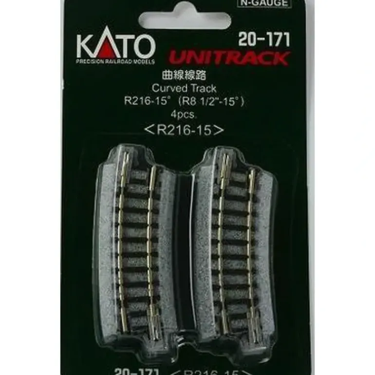 This is a Kato 20-171 N Scale 8-1/2 Radius 15 Curved UniTrack (Pack of 4).