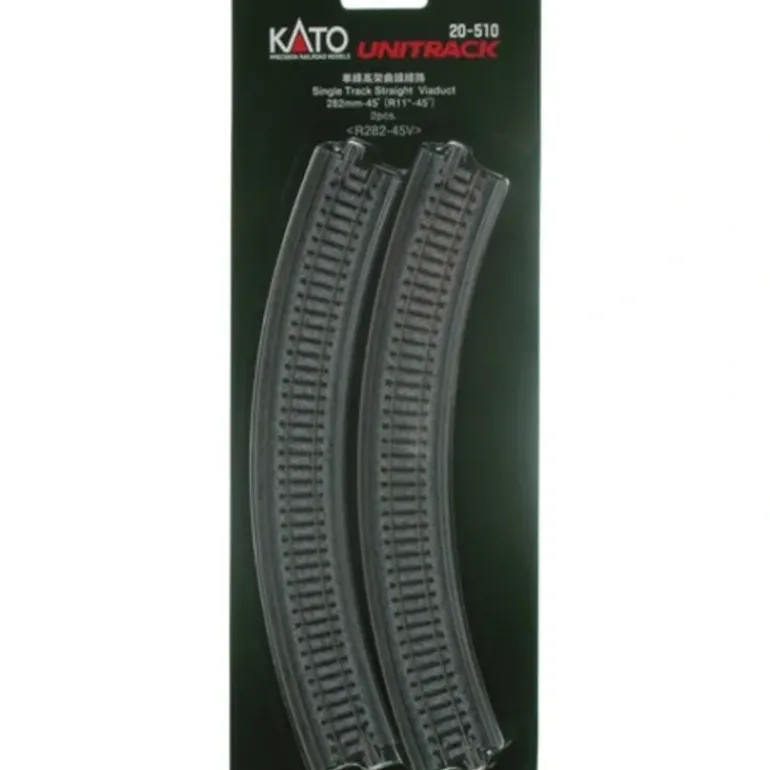 This is a Kato 20-510 N Scale 11 Radius 45 Single Curved Viaduct Track (Pack of 2). Included are 2 sections of curved viaduct with a 45 degree radius.