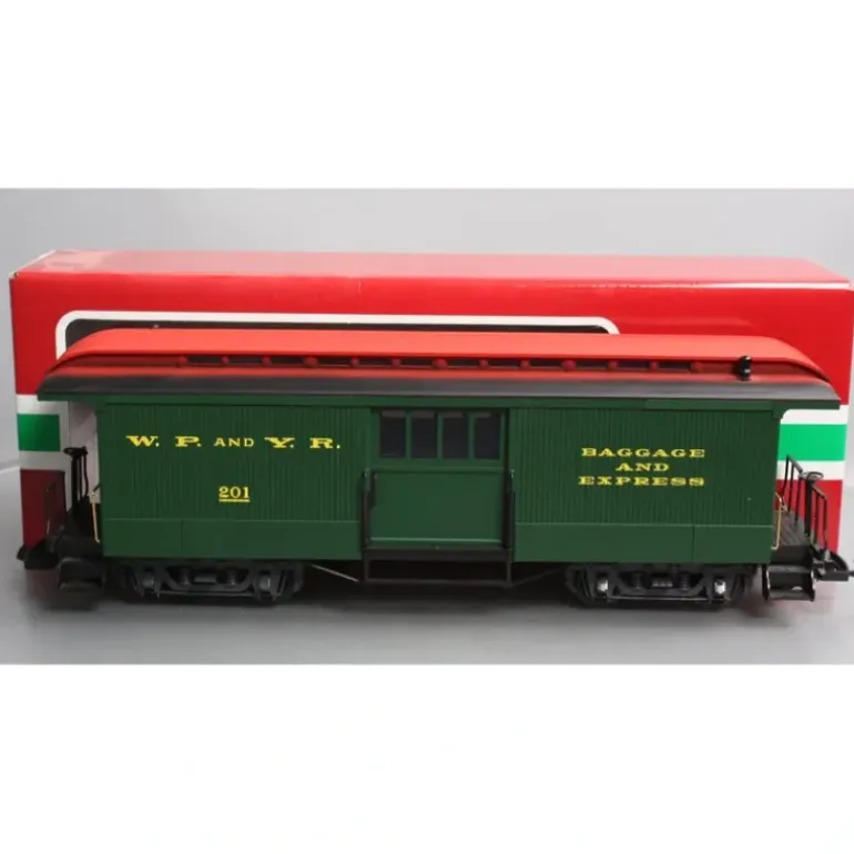 On often-struggling narrow gauge lines like the White Pass & Yukon, baggage cars hauled anything that could be shoved inside, from potatoes to pickaxes. This WP&Y model offers large opening doors for easy loading of whatever you’re carrying. Use it with WP&Y Passenger Car, 226 (LGB 36805) and WP&Y Combine, 202 (LGB 36815) to form an authentic consist from this fascinating railroad.