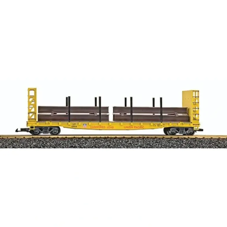 This is an LGB 44540 Union Pacific Bulkhead Flatcar. This car feartures durable plastic construction, plastic trucks, plastic wheels, and plastic couplers.