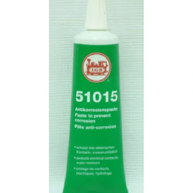 This is an LGB 51015 1.76 ounce tube of Anti-Corrosion Paste. This product is used to protect electrical contacts and is water resistant.
