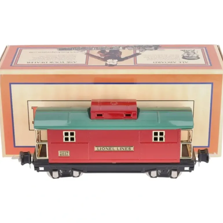This is a Lionel by MTH 11-70008 Red and Green Caboose #2817. It features a baked enamel finish, stamped steel body and chassis, metal wheels and axles, operating metal solenoid couplers, and it operates on O-31 curves.