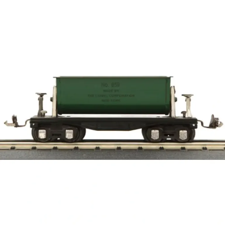 This is made by MTH and is part of the new “Lionel Corporation Tinplate” Line. Produced by Lionel from 1935-1938 the 659 ore dump car was made of “heavy gauge steel, beautifully enameled and trimmed with nickel hand rails, hand breaks, ladders, number plates, and other details”. This particular car had the ability to tilt, allowing for dumping on either and also was designed to be paired with locomotives 252E, 261E, 264E, and 265E. Today this car features a stamped steel body, mechanically operating dump, metal wheels and axels, all finished off in a colorful, attractive paint scheme with a baked enamel finish.