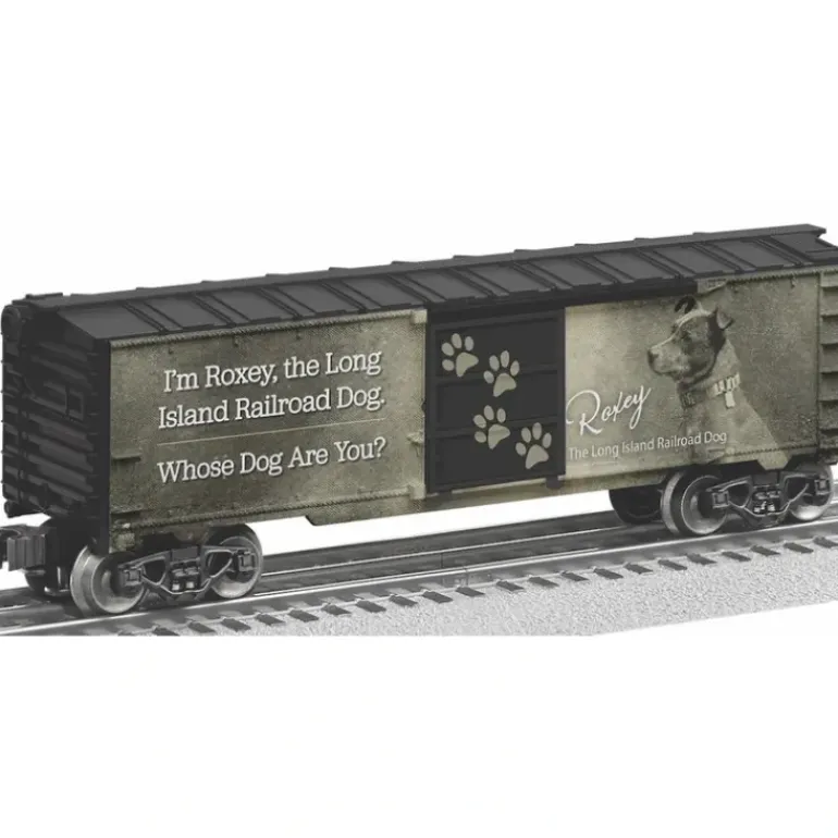This is a Lionel 2438370 O Scale Roxey the Long Island Railroad Dog MUSA Boxcar. It features: Printed and assembled in the US, Die-cast trucks with operating couplers, & Opening doors. Dimensions: Length: 10″”.