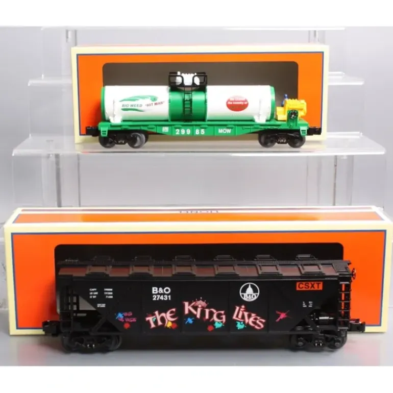 Here is a Lionel 6-11167 CSX Tank Car and Hopper (Set of 2). CSX is on the move clearing brush, debris, weeds, and fallen trees on your layout. Colorful and original, these work freight cars are decorated in merger railroad names. Look closely and youll find a variety of colorful graffiti on the hopper and a generator and worker figure with hose on the weed killer chemical tank car. Both items feature plastic body construction, die-cast sprung trucks, operating knuckle couplers, and metal wheels and axles.