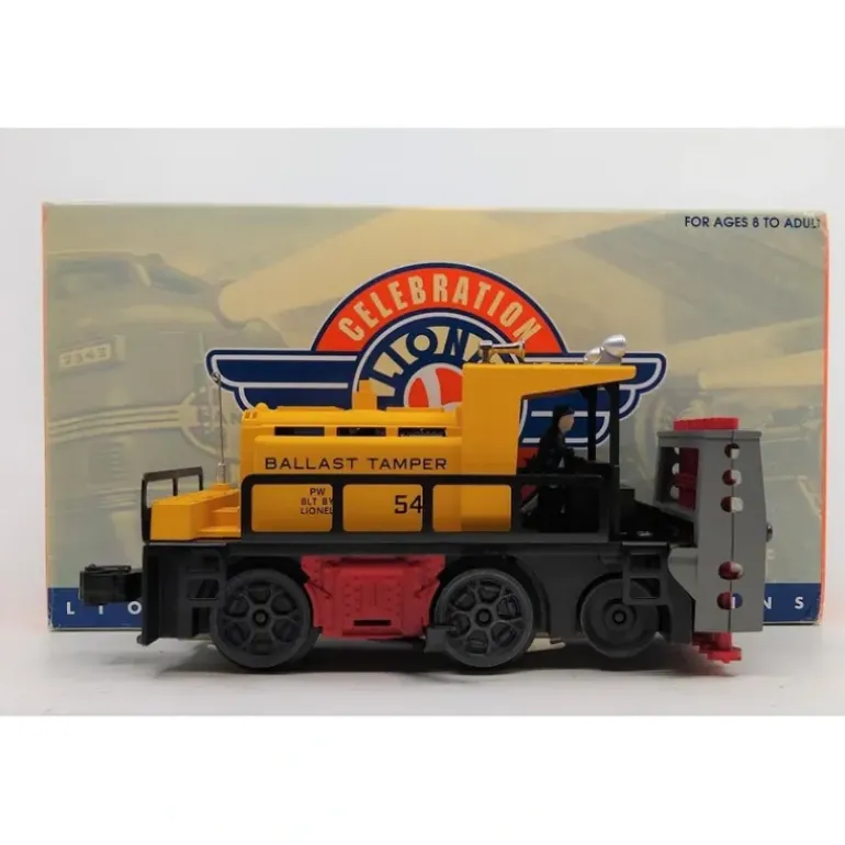 It is part of the Postwar Celebration Series, the original #54 Ballast Tamper first handled Maintenance of Way duties on O gauge railroads of the 1950s and 1960s. This self-propelled unit cruises at normal speed to a trouble spot on your line. A track actuator triggers the unit slowing its speed while the six tampers pop up and down. A second track actuator halts the tamping action and restores the car to normal speed.