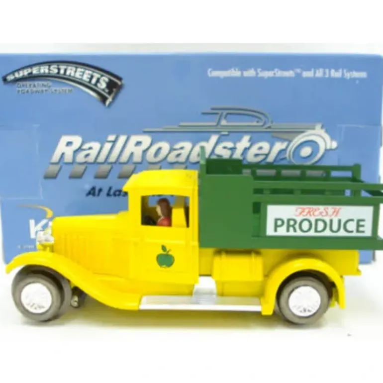 Here is a K-Line by Lionel Railroadster 21297 Fresh Produce Classic Superstreets Truck. It is motorized and features die-cast construction, colorful paint scheme, and measures 4.5 inches long. Compatible with SuperStreets and all O Gauge 3-rail systems.