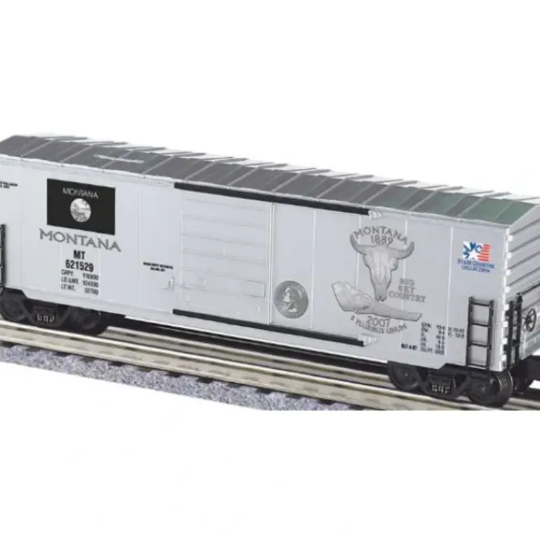 This Montana State boxcar features operating die cast couplers, bank slot on roof, separate metal details, underside chassis detail, operating Die Cast Couplers, die cast trucks and wheels This is Standard O Gauge and measures 11.25 long and operates on 0-31 minimum curve.