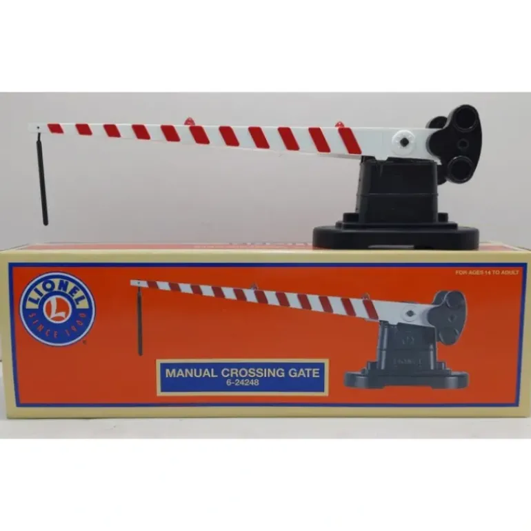 Here is a Lionel 6-24248 manual crossing gate. Features Raise and lower gate manually Gauge: Traditional O Gauge Dimensions: 9 1/2 gate length
