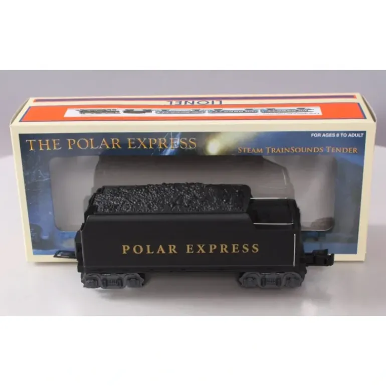 Here is a Lionel 6-36847 O Gauge Polar Express Steam Sounds Tender. Upgrade the sound system on your Lionel Polar Exress set with this upgraded tender. The tender features a trainsounds sound system that includes realistic steam chuffing, steam whistle, bell, squealing brakes, and operator-controlled multi-part crew dialog. This is all controlled with a conventional transformer, including the transformer in the Polar Express set. The tender also features an operating coupler on rear of tender and the minimum radius is O-27.