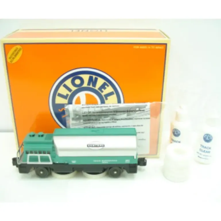 Here is a Lionel 6-36878 NYC Track Cleaning Car from 2008. Keep your O gauge mainline spotless with routine maintenance-of-way runs. Pull the track cleaning car behind any O gauge locomotive. Its hefty die-cast metal frame and rotating cleaning sponges get the job done. The first sponge scrubs the track with cleaning fluid, while the second dry sponge soaks up the excess fluid. Features include large track cleaning fluid reservoir with ON/OFF flow switch, two rotating, replaceable sponges, a die-cast metal frame and metal handrails. It measures 9 inches long and the minimum curve radius is O-27.