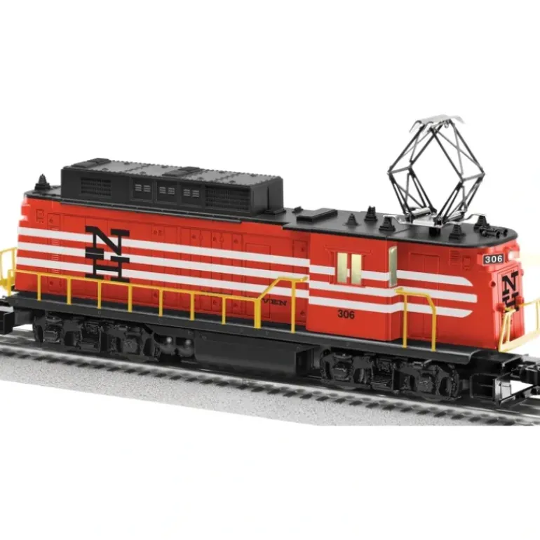 This is a Lionel 6-82177 O New Haven E33 Rectifier Electric Locomotive #306. Features includes user selected operational modes: Conventional AC transformer control mode or LionChief wireless remote control with AC or DC power. ElectroCoupler on rear of tender controlled by the LionChief remote only, operating headlight, synchronized fan-driven smoke, on/off switches for sound and smoke, RailSounds RC sound system with steam chuffing and background sounds| whistle| bell| and user-activated announcements. Adjustable volume (controlled by remote only), constant speed control to maintain a steady speed at a crawl or full speed and everything in between regardless of track conditions or load, flickering firebox, chuffing sounds in sync with speed of locomotive, powerful maintenance-free motor, die-cast metal locomotive body| frame| and trucks. Die-cast metal tender body and trucks, metal frame on tender, engineer and fireman figures, traction tires.