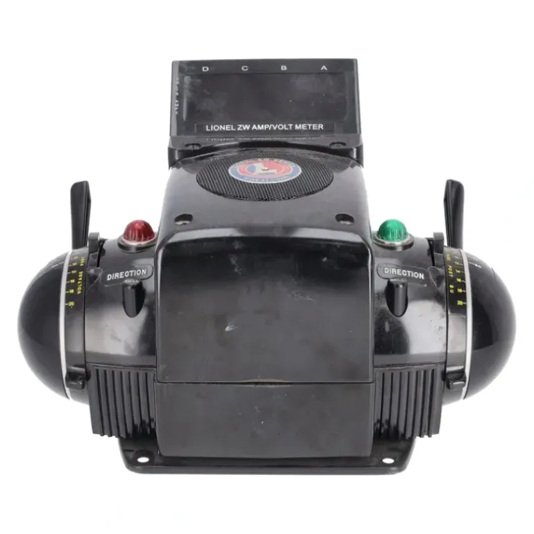 Here is a Lionel ZW & 6-14077 O Trainmaster 275 Watt Transformer with Whistle & Amp Meter. This ZW is the largest Lionel transformer and produced up to 275 Watts, it has controls to operate four trains, circuit breaker and whistle controllers (there are only two whistle controllers, and they are wired to the outer control arms). The ZW is one of the most reliable transformers ever made and will meet just about any power needs on a layout. Dimensions – 12 x 6 inches. This item also includes the Lionel 6-14077 ZW Amp/Volt Meter. The Amp/Volt Meter for ZW controllers allows you to monitor the output of all four ZW channels with a digital LED display. Give each channel the exact power you want by watching the readings increase or decrease as you move your ZW handles. Simple to install, the Amp/Volt meter fits conveniently on the top of your ZW controller for easy monitoring.