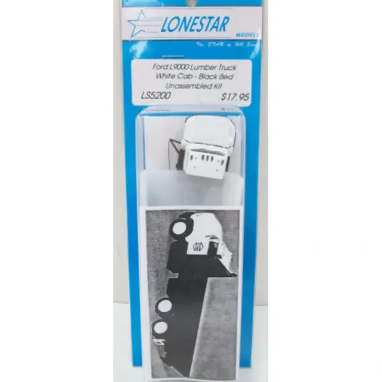 This is a Lonestar Models LS5200 HO Ford 9000 Lumber Truck White Cab-Black Bed Kit.