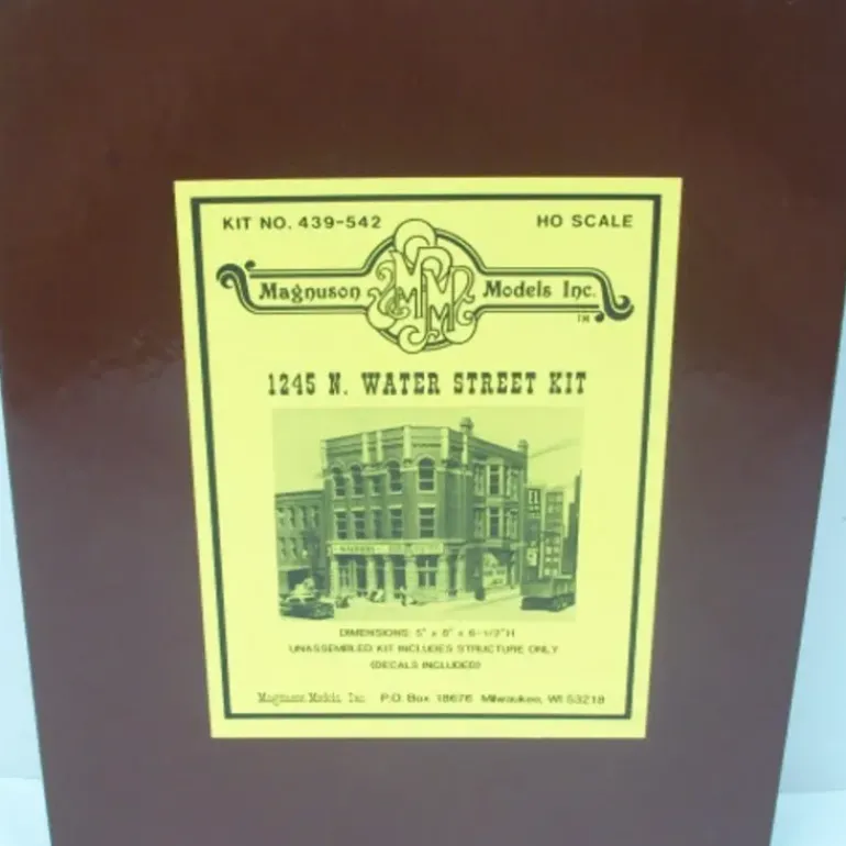 Here is a Magnuson Models 439-542 HO 1245 N. Water Street Kit. This kit features easy to assemble pieces, detailed instructions, intricately realistic detail, and attractive decoration.
