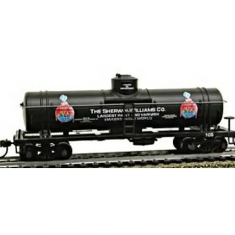 This is a Mantua 732308 HO Scale Sherwin-Williams 40′ Single Dome Tank Car #105. Plastic construction with detailed graphics.