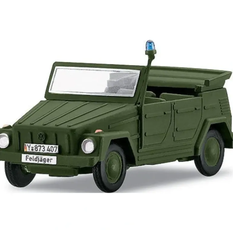 This is a Marklin 18706 Open Volkswagen 181 Feldjagere. It is a die-cast HO model and features realistic detail and attractive decoration.