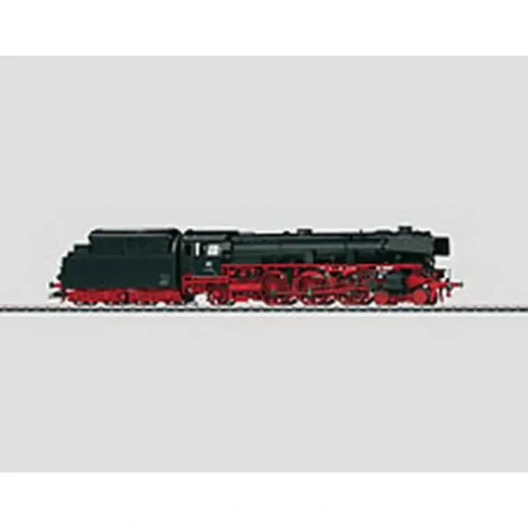 German Federal Railroad (DB) class 03.10 express steam locomotive. Non-streamlined rebuilt version with a new, high performance boiler, Witte smoke deflectors, DB Reflex glass lamps, and a rebuilt tender with coal bunker hatches, and stoker equipment. The pilot truck has solid wheels like the prototype. Road no. 03 1001. The locomotive looks as it did around 1963. The locomotive has an mfx digital decoder and extensive sound functions. It also has controlled high-efficiency propulsion, with a bell-shaped armature and a flywheel, in the boiler. 3 axles powered. Traction tires. The locomotive and the tender are constructed chiefly of metal. A 7226 smoke generator can be installed in the locomotive. The triple headlights change over with the direction of travel. They and the smoke generator, which can be installed in the locomotive, will work in conventional operation, and can be controlled digitally. The headlights are maintenance-free, warm white LEDs. There is a close coupling with a guide mechanism between the locomotive and tender. There is a close coupler with a guide mechanism and NEM coupler pocket on the tender. The hatches for the coal bunker can be opened and closed. Minimum radius for operation 360 mm / 14-3/16. Piston rod protector sleeves are included. Length over the buffers 27.5 cm / 10-13/16. Completely new tooling. Particularly finely detailed metal construction. High-efficiency propulsion with a bell-shaped armature, in the boiler. A wide variety of operation and sound functions that can be controlled digitally.