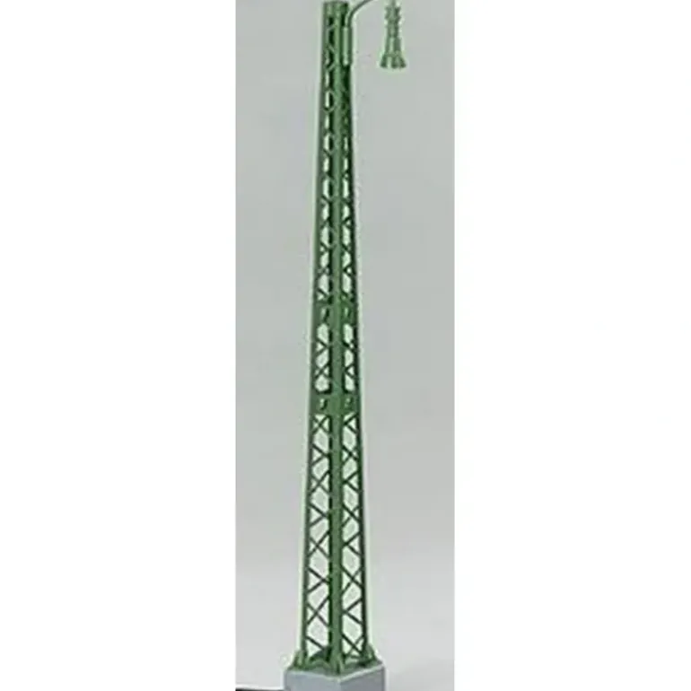 This is a metal lattice mast. It has a base with a mounting screw and slide-in connection. It is suitable for cross spans or individual catenary hanger arms. It can be used with all track systems. A clear light bulb provides illumination. Mast height without light 170 mm / 6-11/16.